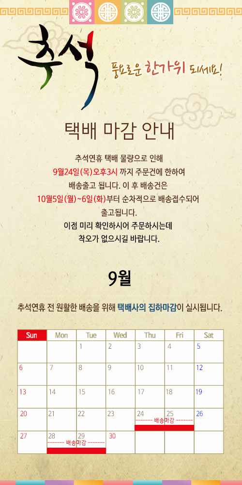 [Áö³°øÁö] 9¿ù Ãß¼® ¹è¼Û ¸¶°¨¾È³»