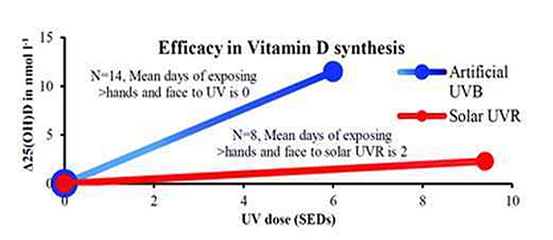 1 solar SED¸¦ ¼Õ°ú ¾ó±¼¿¡ Á¶»çÇϸé 25(OH)D À»1 nmol Áõ°¡ÇÕ´Ï´Ù.